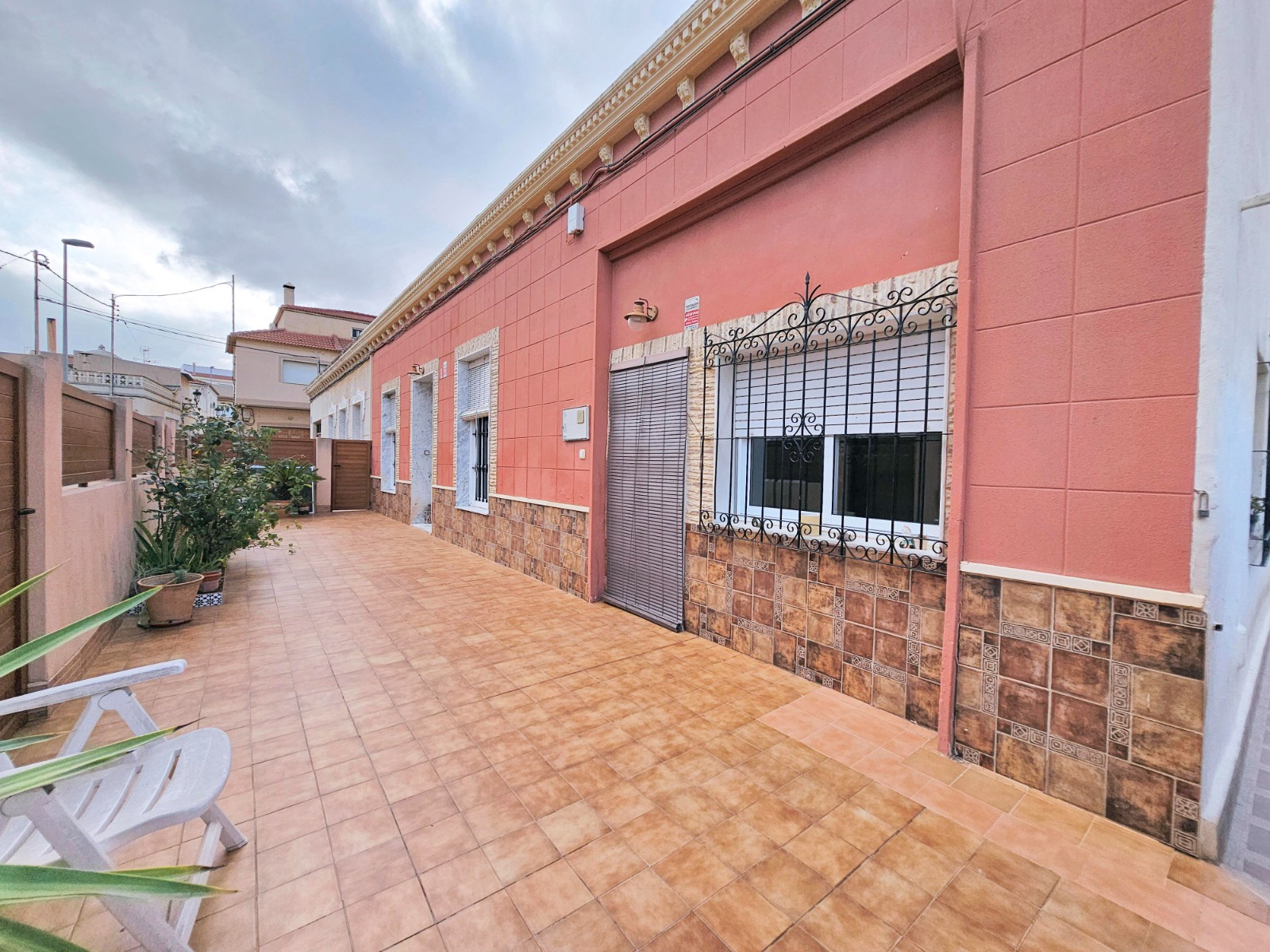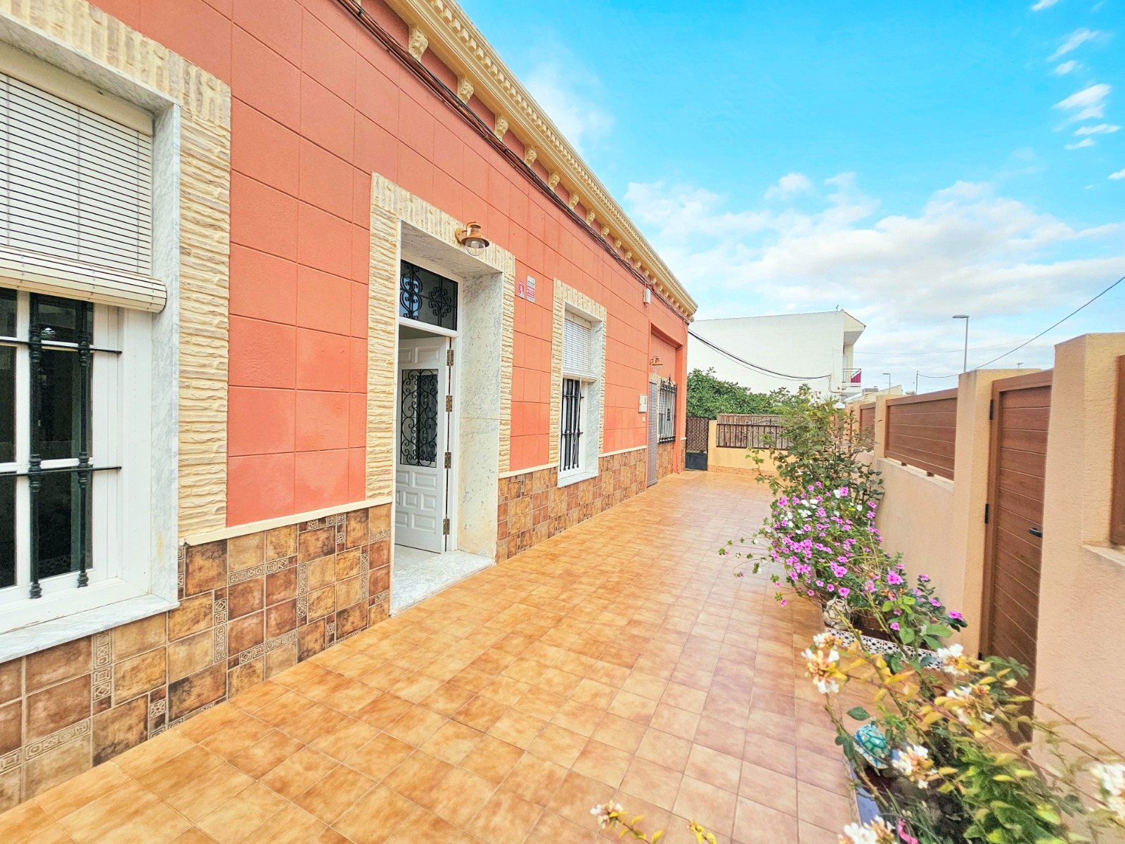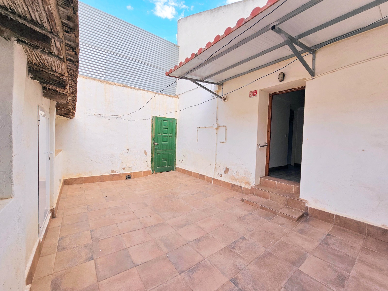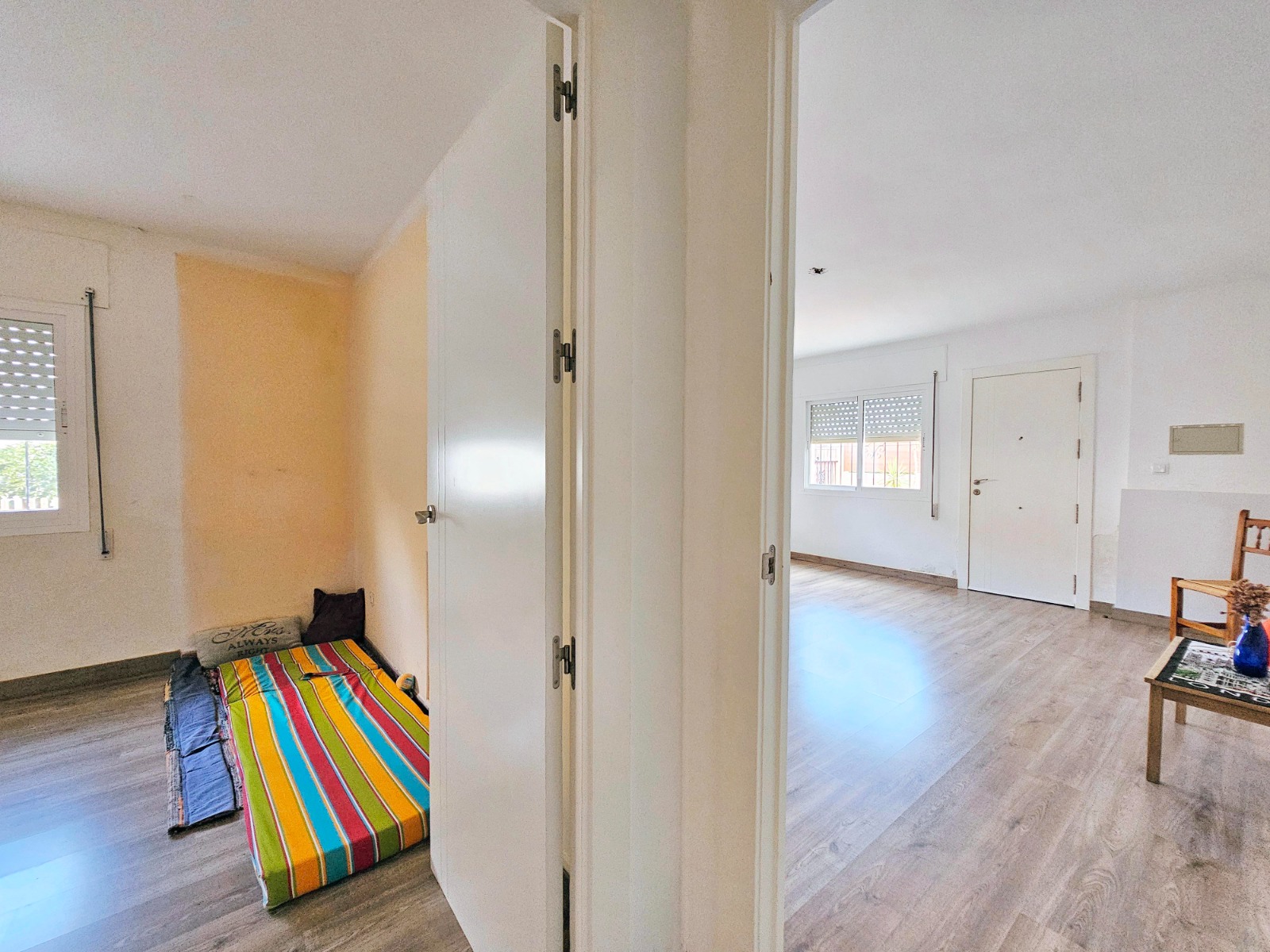 Desde el porche/jardín delantero de la vivienda se puede acceder a la otra parte que cuenta con cuatro estancias, una de ella está preparada para cocina, dos de ellas son amplios dormitorios, al lado del porche está el salón comedor y un baño completo con placa de ducha.