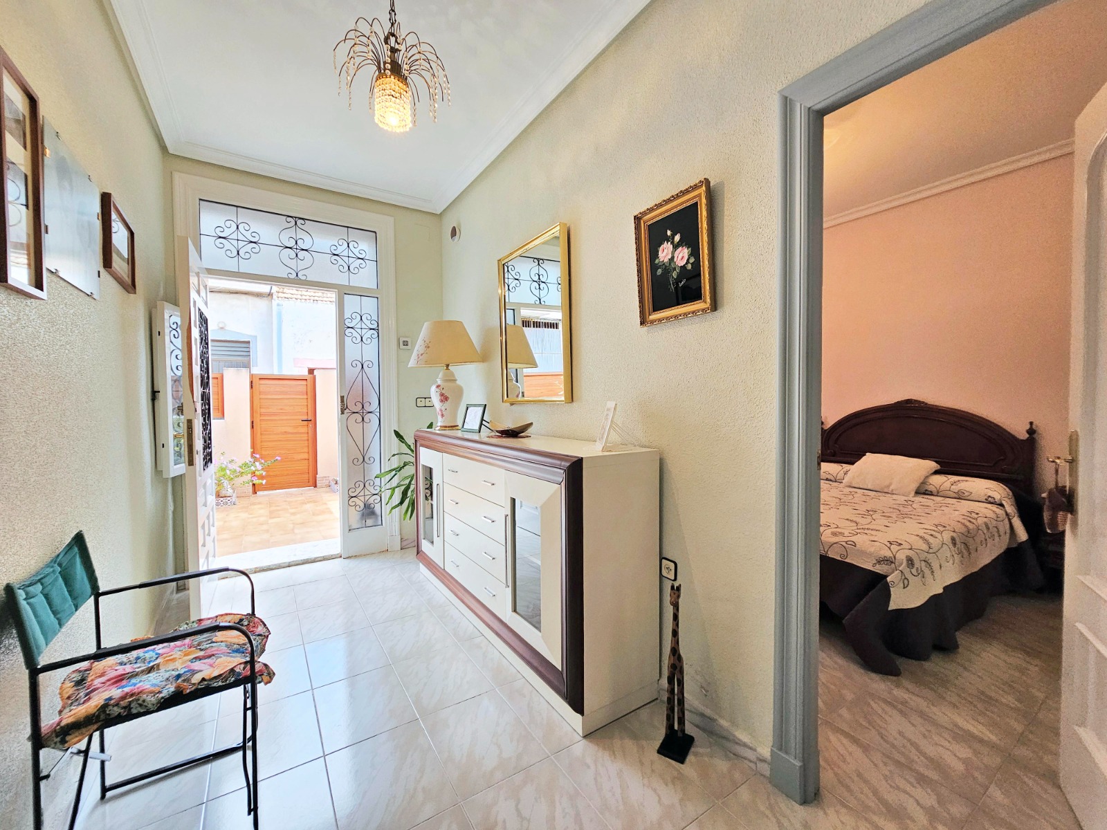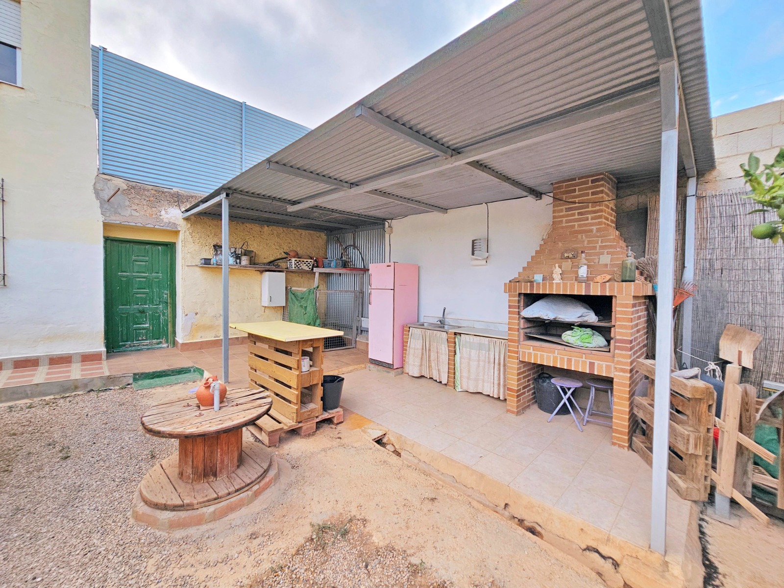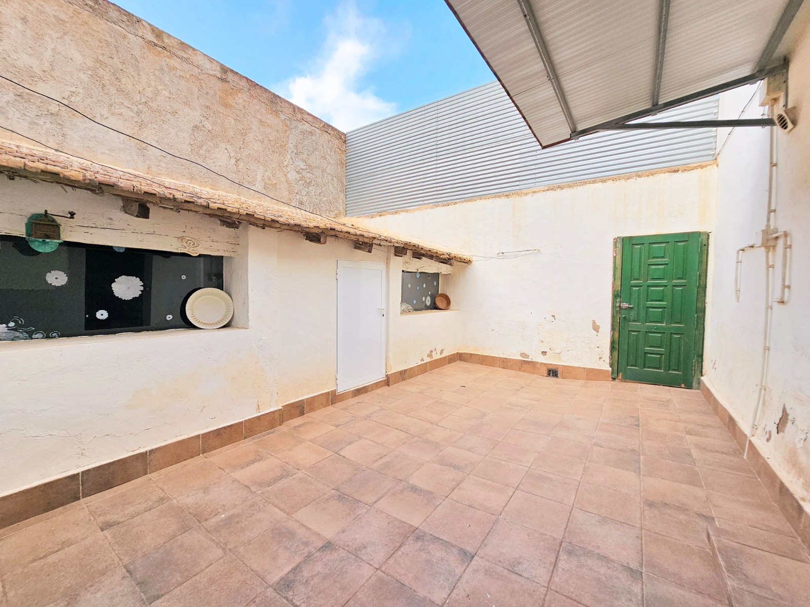 Desde el porche/jardín delantero de la vivienda se puede acceder a la otra parte que cuenta con cuatro estancias, una de ella está preparada para cocina, dos de ellas son amplios dormitorios, al lado del porche está el salón comedor y un baño completo con placa de ducha.