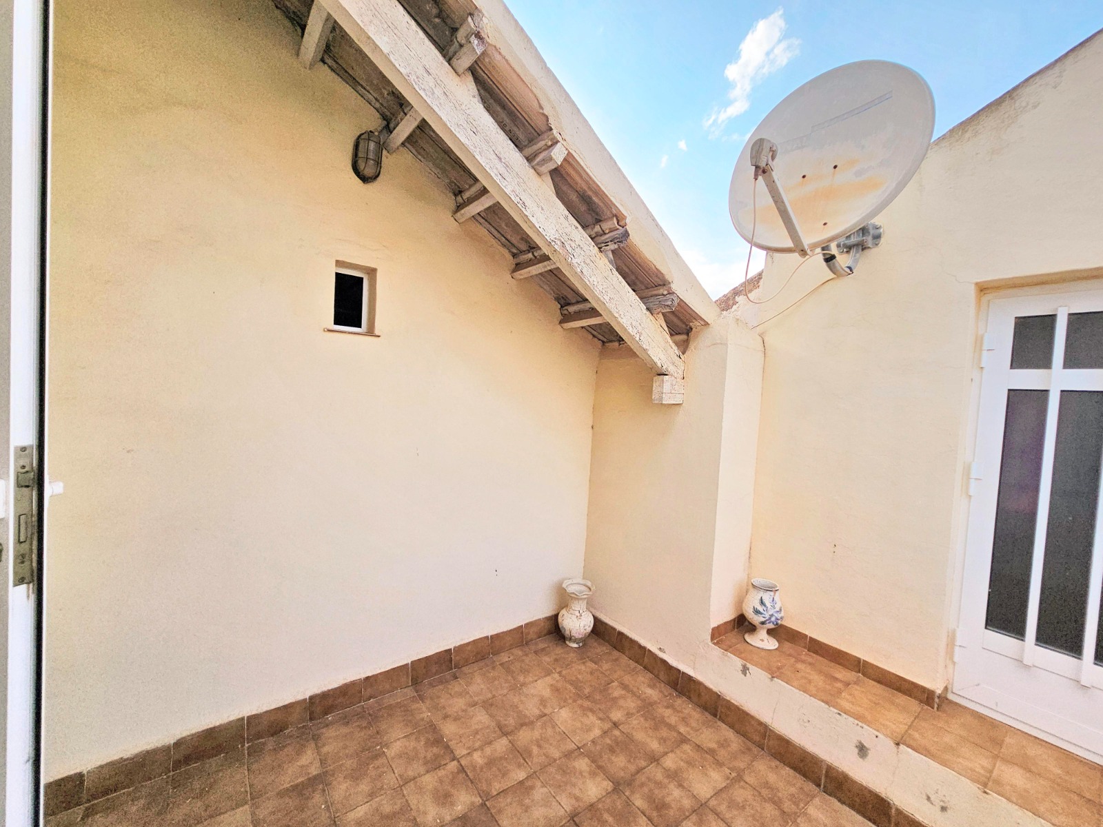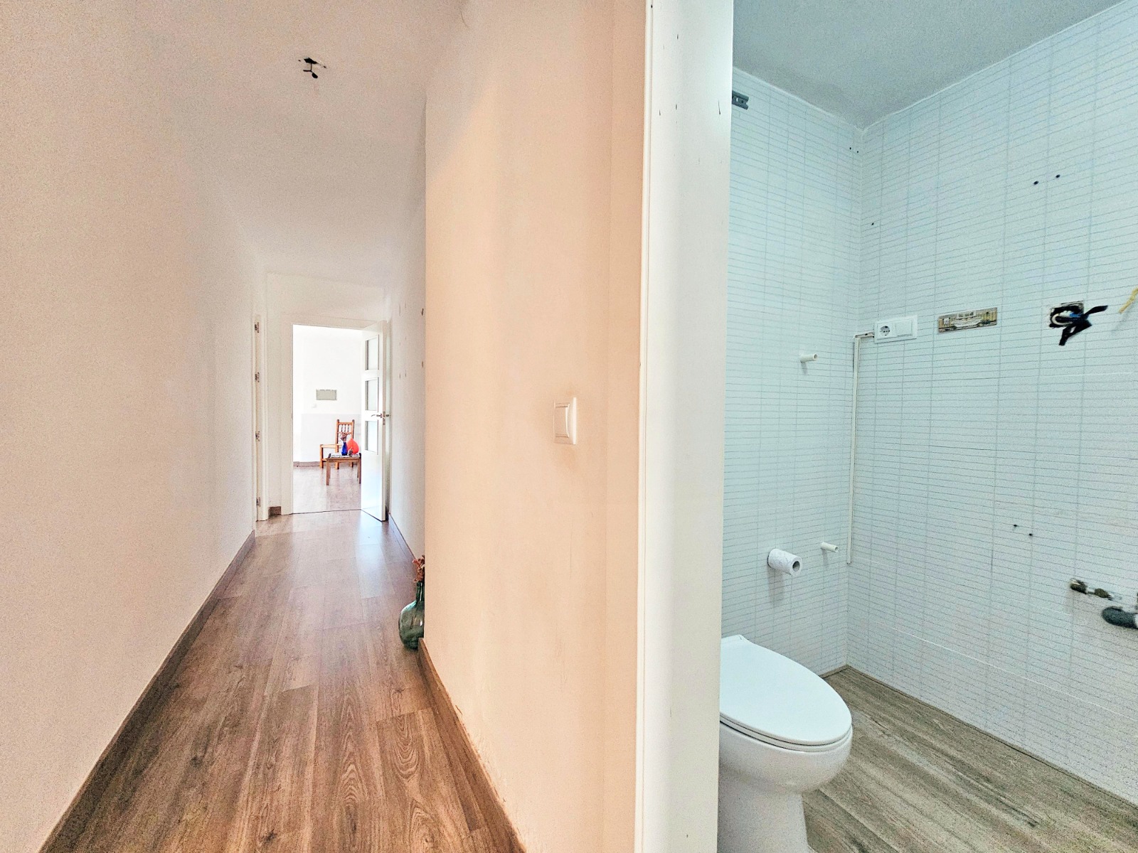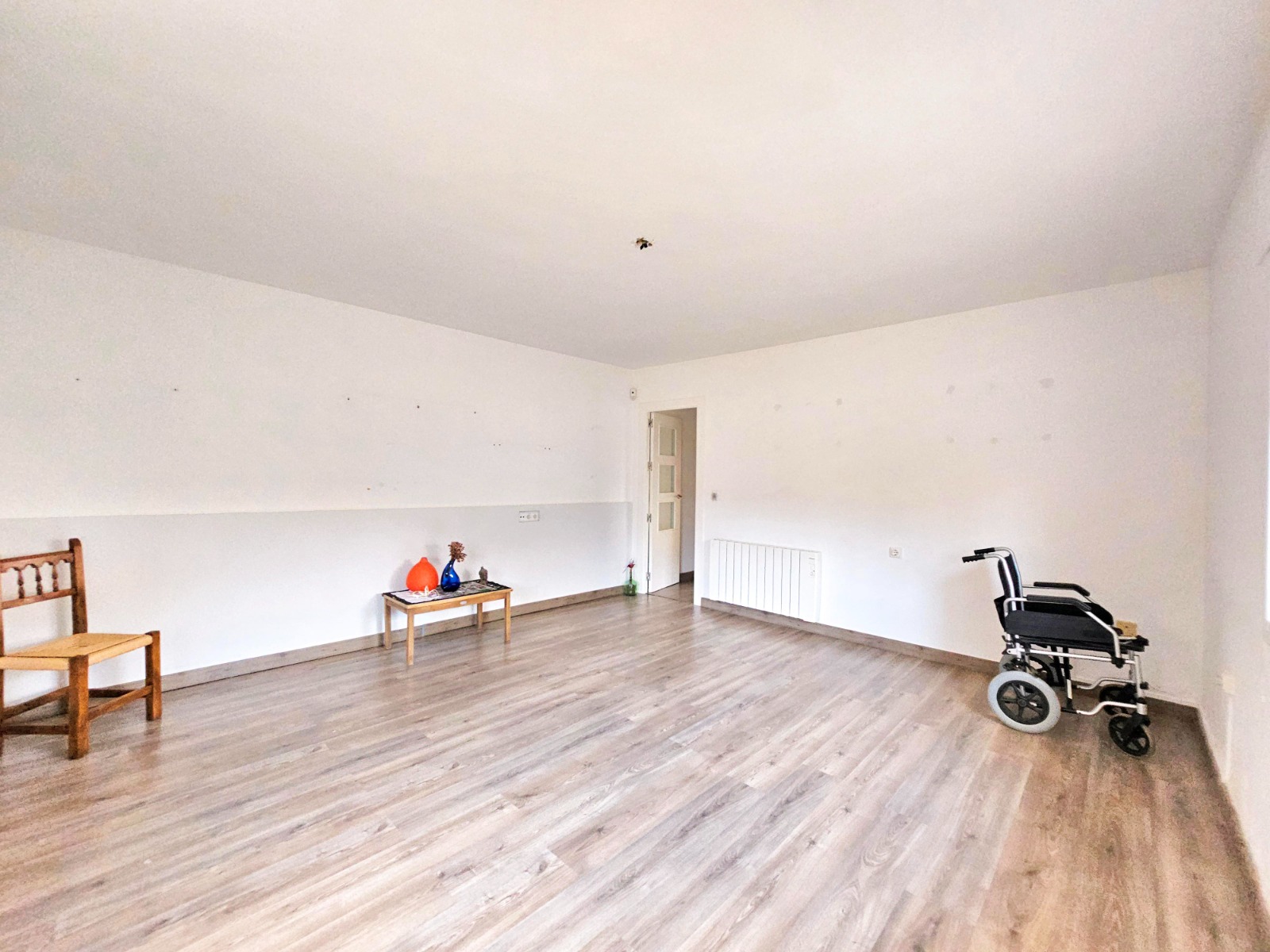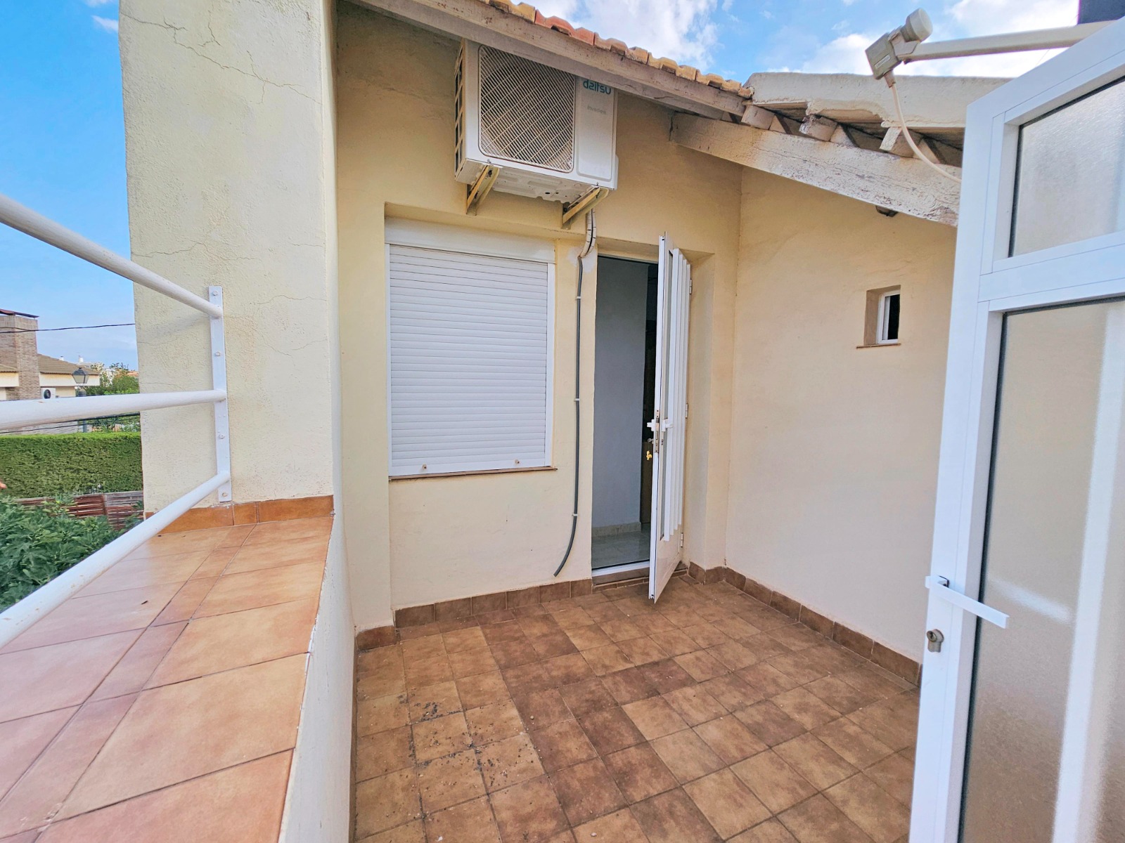 Desde el porche/jardín delantero de la vivienda se puede acceder a la otra parte que cuenta con cuatro estancias, una de ella está preparada para cocina, dos de ellas son amplios dormitorios, al lado del porche está el salón comedor y un baño completo con placa de ducha.