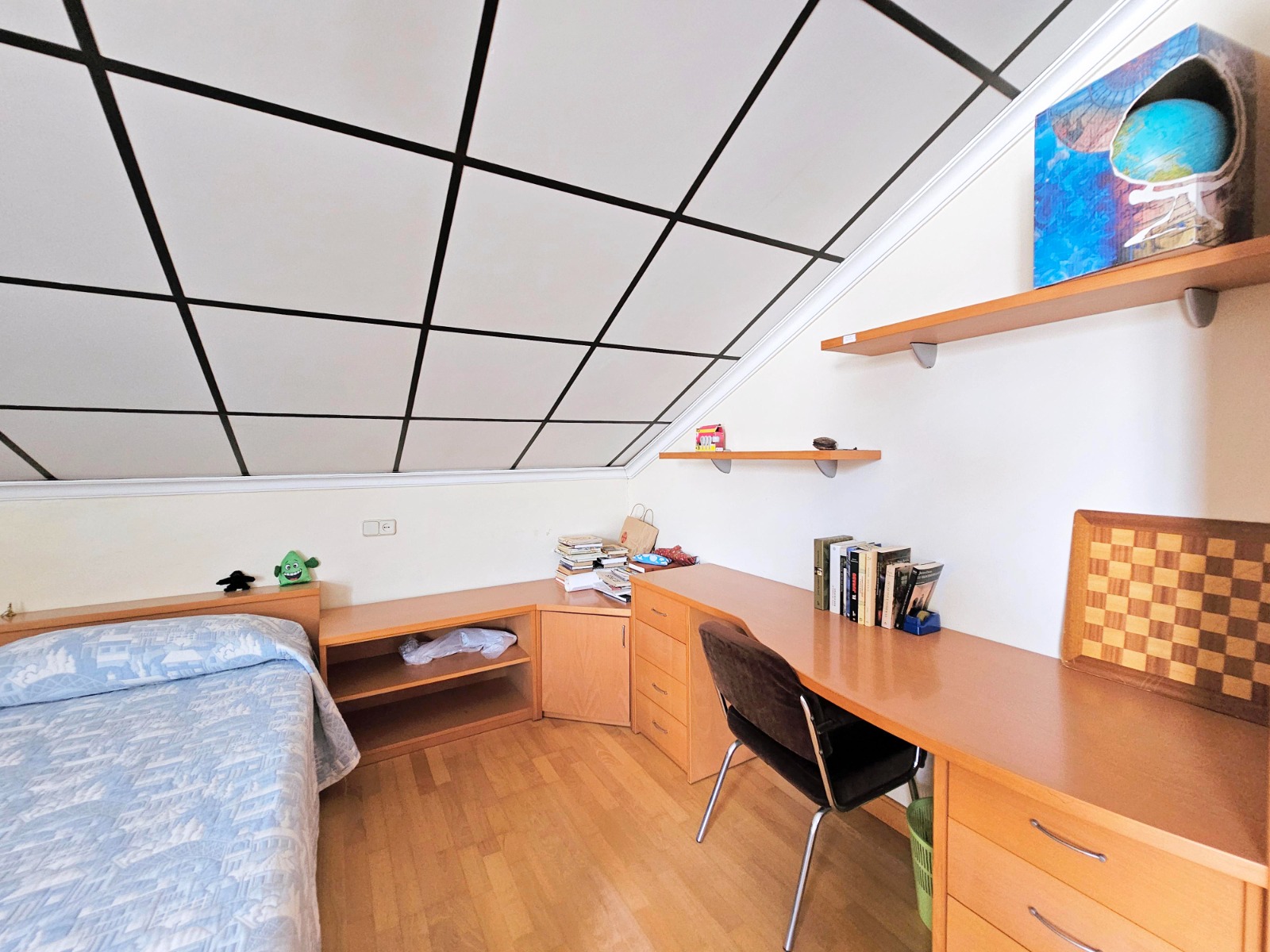 Además cuenta con un gran salón comedor con acceso a una buhardilla totalmente amueblada de más de 50 m2 y equipada con aire acondicionado, baño completo y gran zona de almacenamiento o trastero.