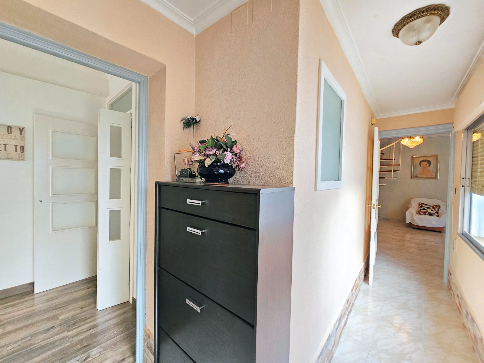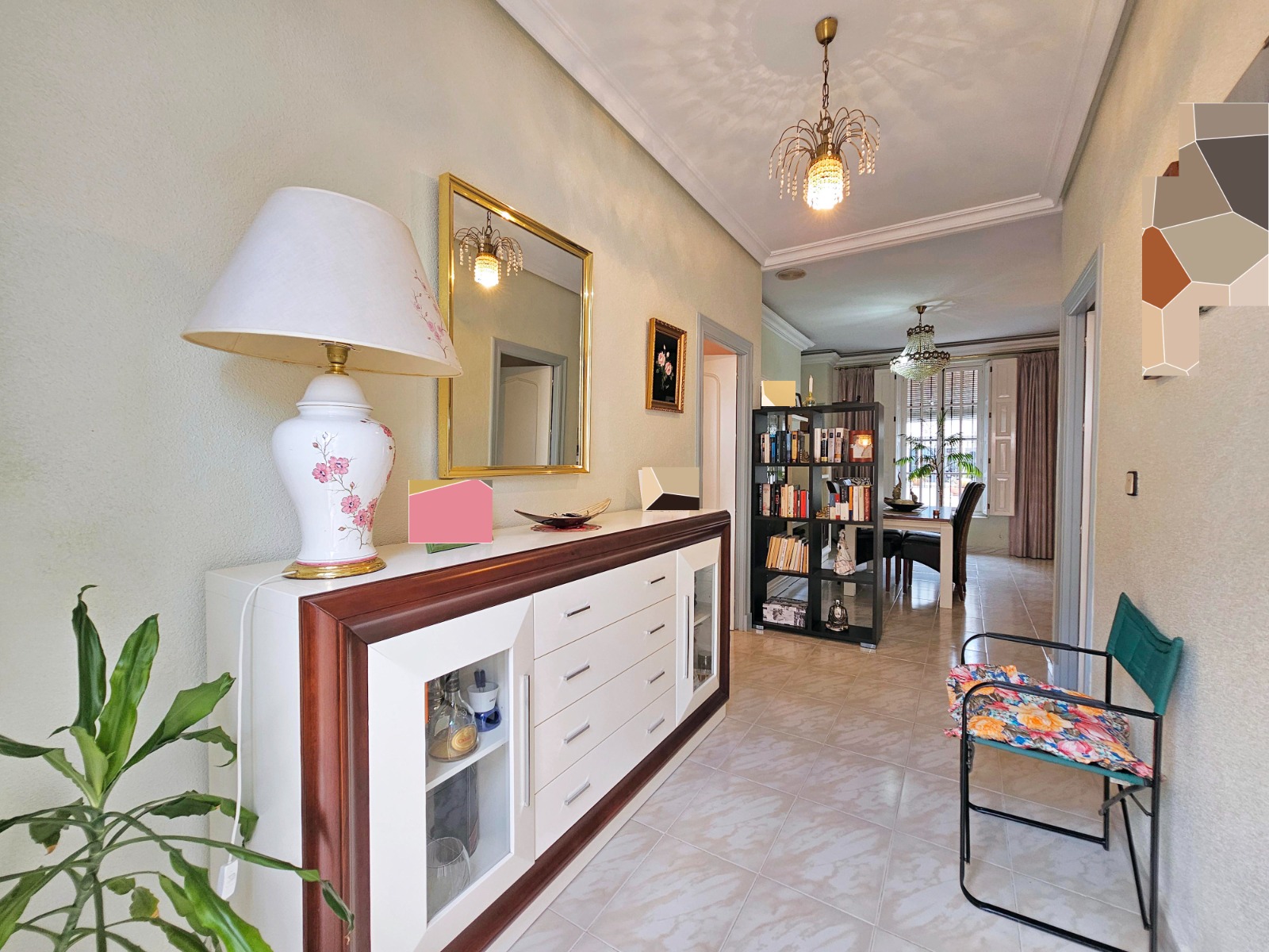 Chalet con una superficie construida de 224 m2, y que se trata de dos viviendas en una porque la división está hecha, ideal para familiares o incluso como inversión. La vivienda cuenta con 3 dormitorios en planta baja, uno de ellos tipo suite con baño totalmente equipado), sala de estar, cocina totalmente amueblada y equipada con electrodomésticos, zona de lavandería y despensa con acceso a un patio que tiene un gran trastero y conectado a la zona exterior de la vivienda.