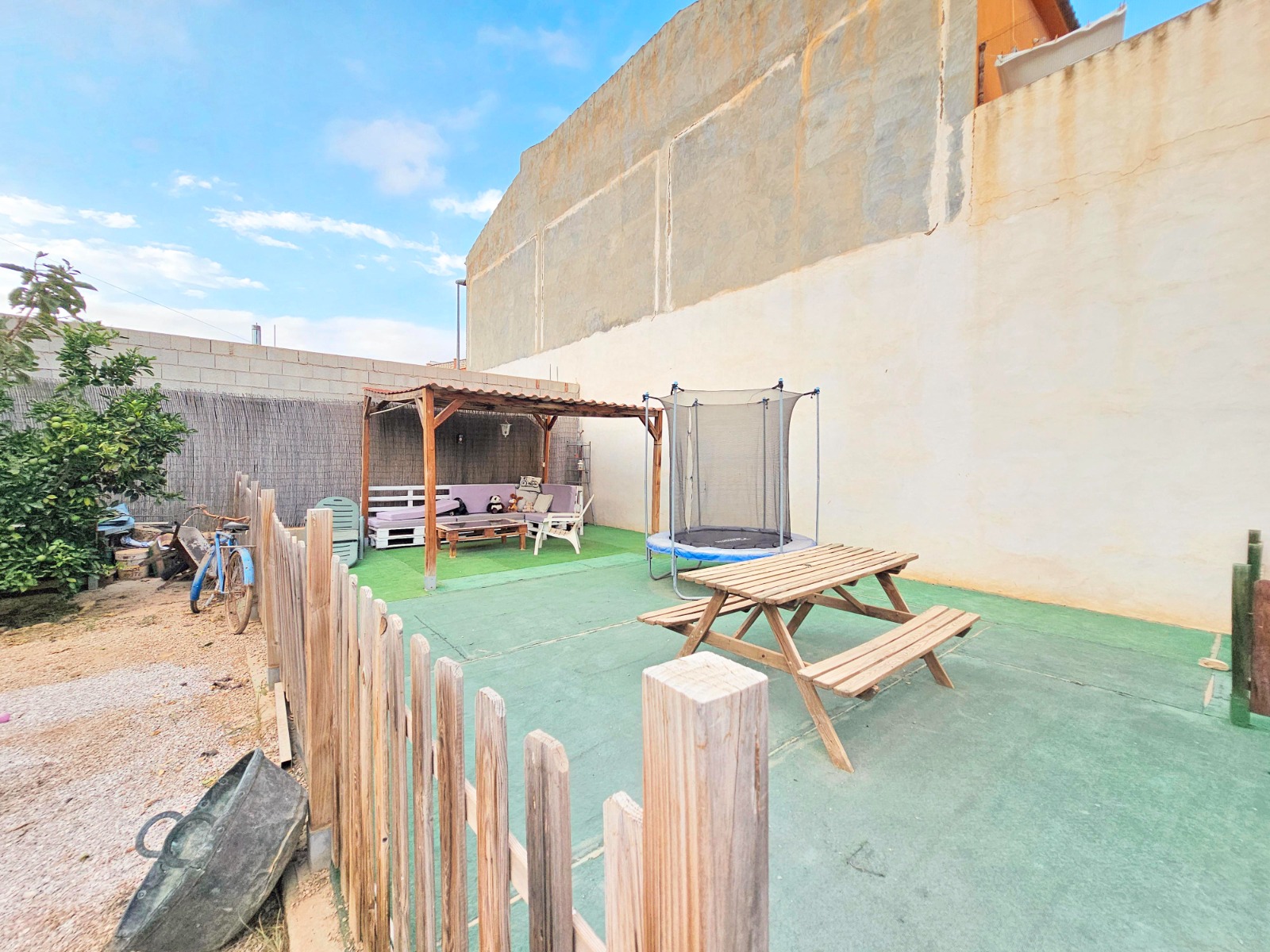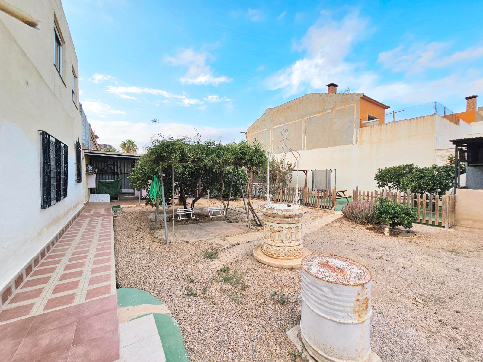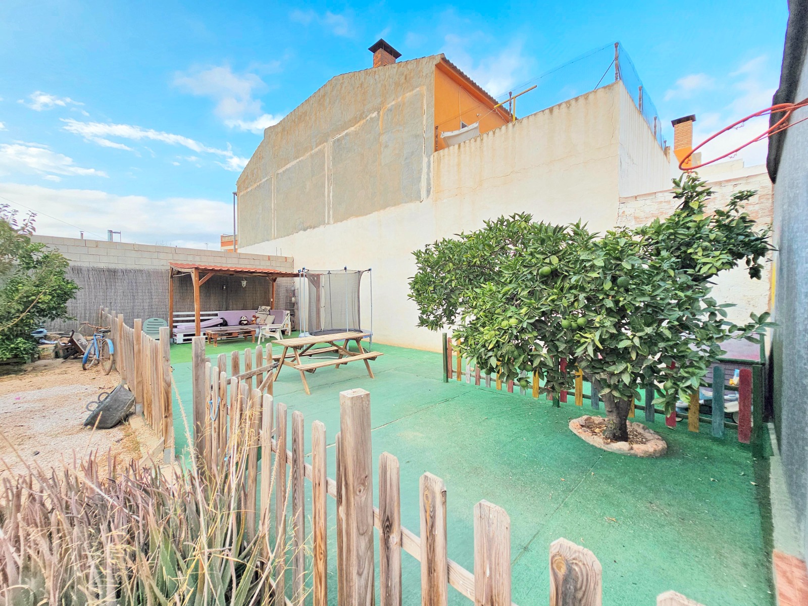 Además cuenta con una gran parcela de 400 m2 aproximadamente donde se puede aprovechar el espacio con innumerables posibilidades tales como garaje, zona de barbacoa y porche, zona de recreo, de celebraciones, mascotas o incluso piscina.
