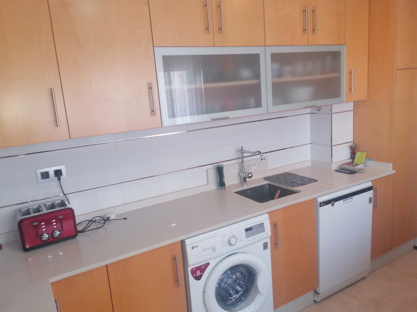 Amplio piso totalmente amueblado y reformado, con una superficie total de 114 m2. Consta de un gran recibidor con aire acondicionado, gran cocina independiente totalmente amueblada y equipada con electrodomésticos de primeras marcas, amplio salón comedor también con aire acondicionado, tres dormitorios ( el principal con gran armario empotrado hecho a medida) y baño completo con placa de ducha y cierre con panel acristalado.