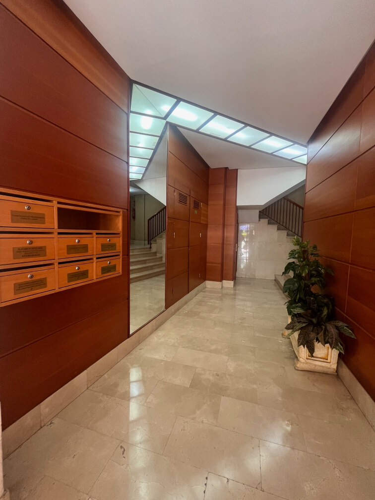 El piso cuenta con dos accesos, puerta de entrada principal de seguridad y puerta de servicio, aire acondicionado en el salón, puertas de madera de pino, ventanas de aluminio, suelo de mármol travertino, videoportero, rejas en el patio interior, despensa.