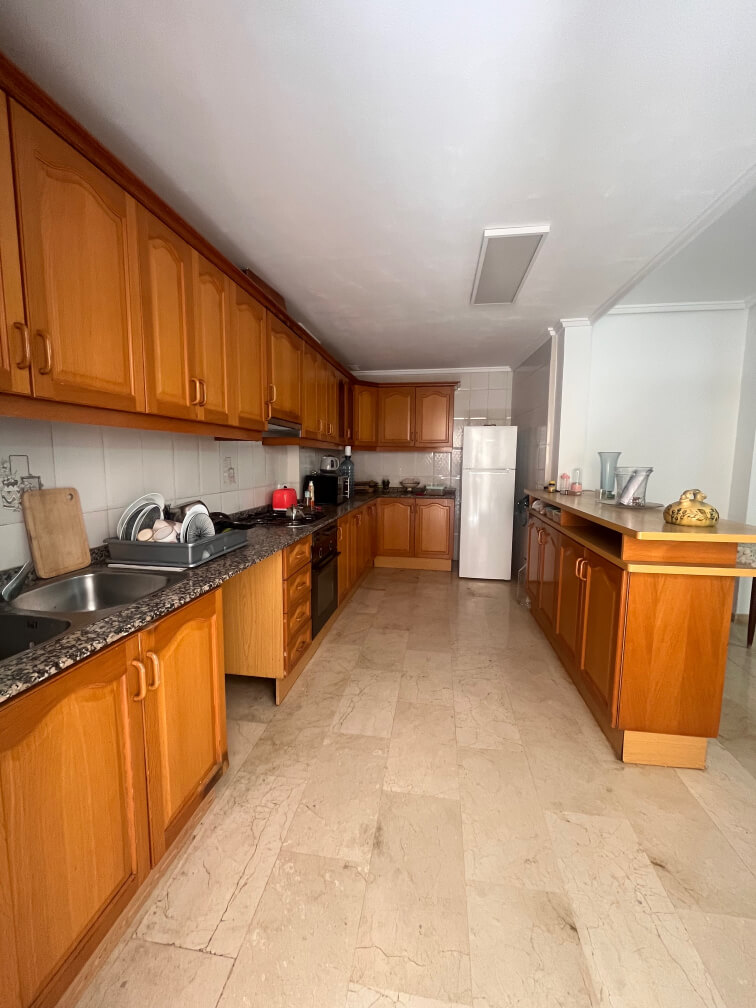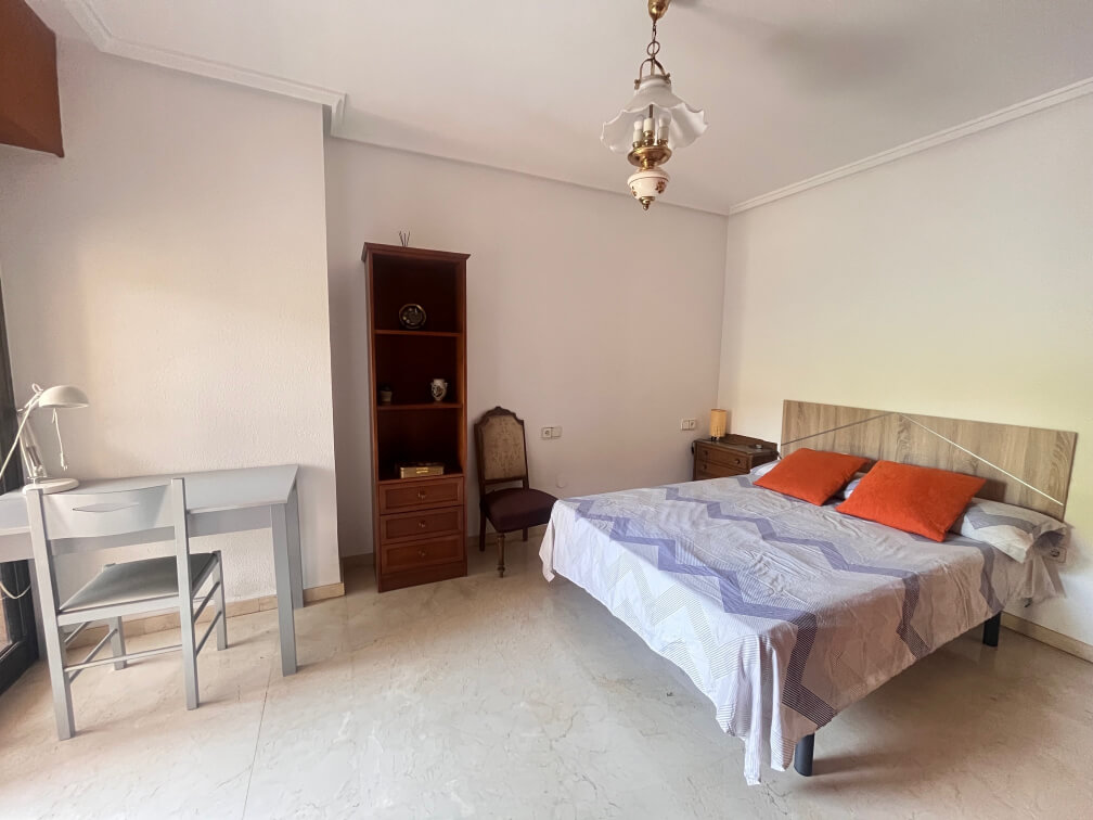 La vivienda cuenta con cuatro dormitorios dobles, todos ellos con salida a balcón con vistas a una plaza céntrica de Orihuela, dos baños totalmente equipados, uno con ducha y el otro con bañera, amplia cocina totalmente amueblada y equipada con electrodomésticos y acceso a un patio interior y coqueto salón comedor con gran ventanal.