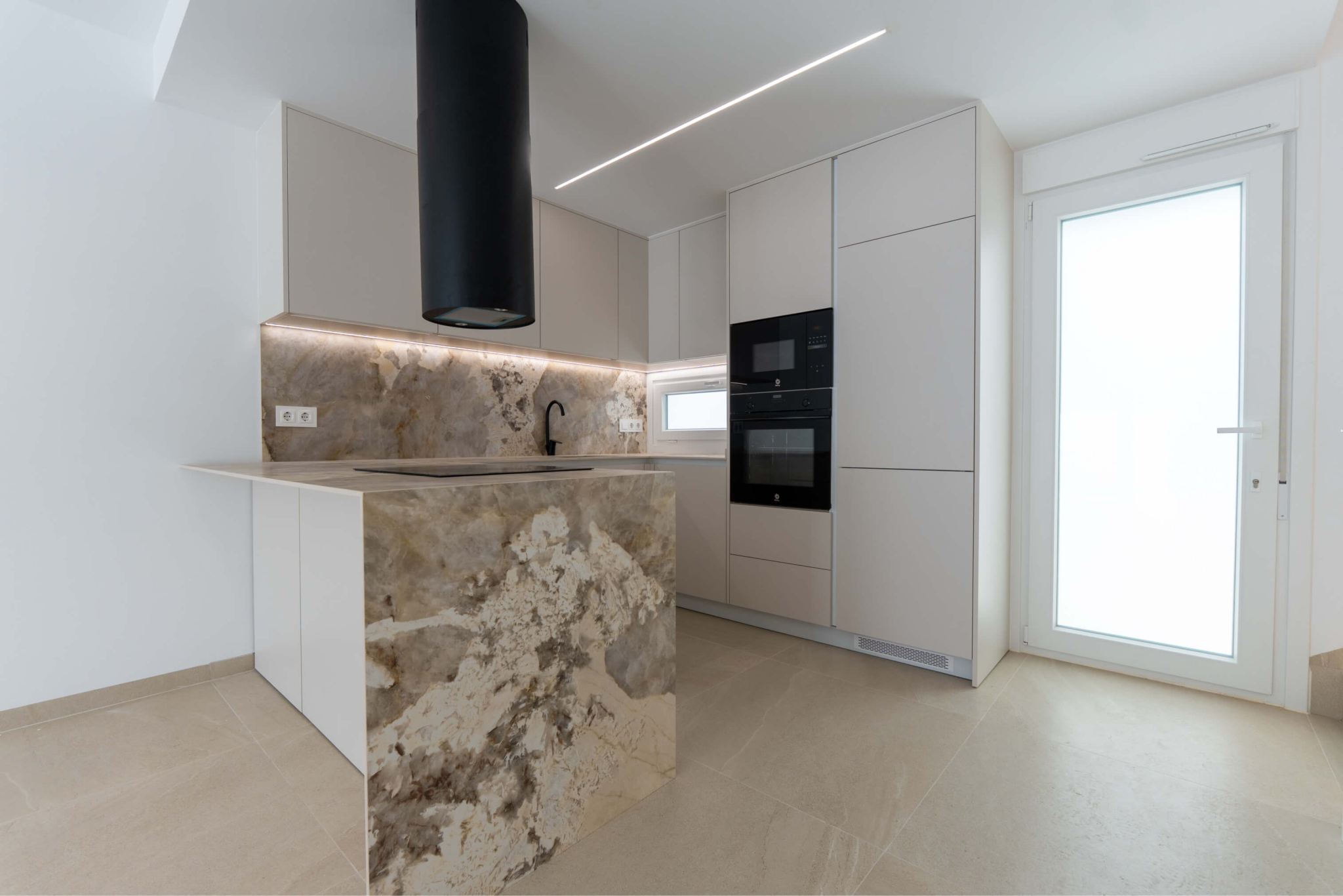 La planta baja presenta un espacio abierto y amplio donde se encuentra salón y cocina, con acceso a zona de lavandería, gran dormitorio con armario empotrado y un baño.