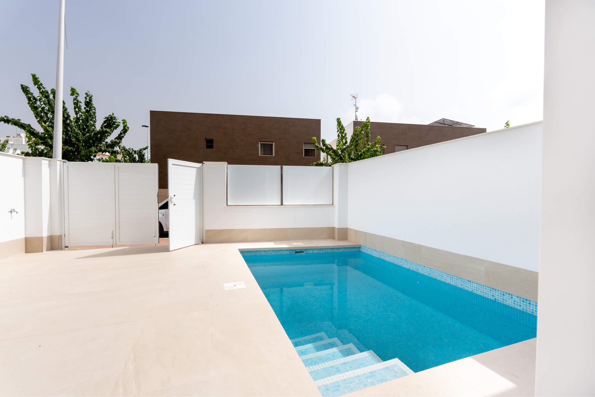 En venta moderna villa con tres dormitorios, piscina privada y solarium en San Pedro del Pinatar.