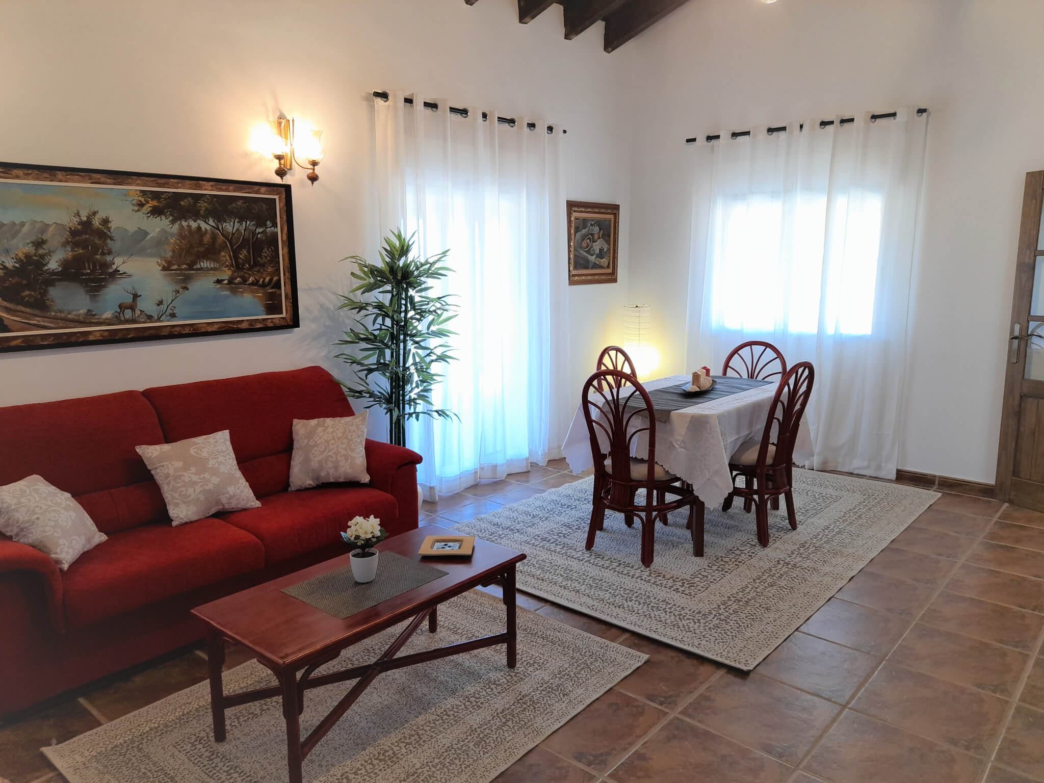 La vivienda es totalmente independiente en planta baja, dispone de 3 amplios dormitorios ( de 14, 10 y 11.5 m2), cuarto de aseo y cuarto de baño completo, salón comedor de 25m2, cocina de 13 m2, lavadero y un fantástico porche de 48 m2.