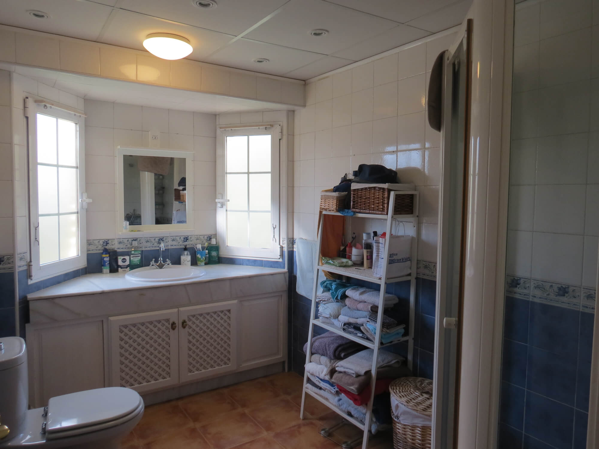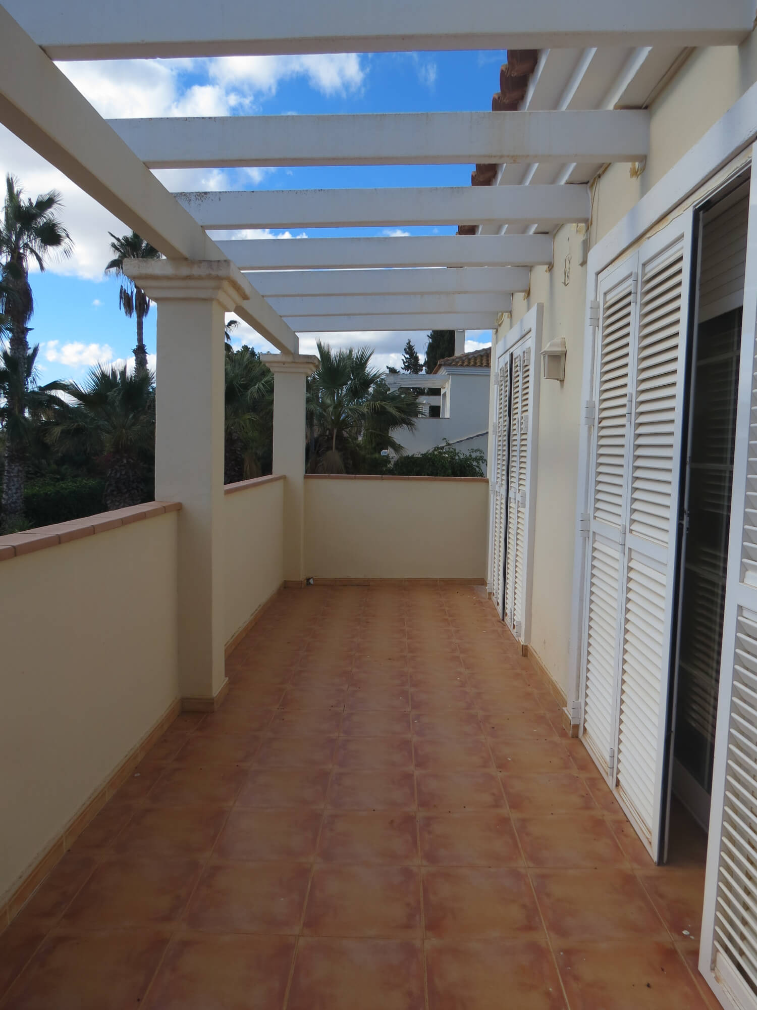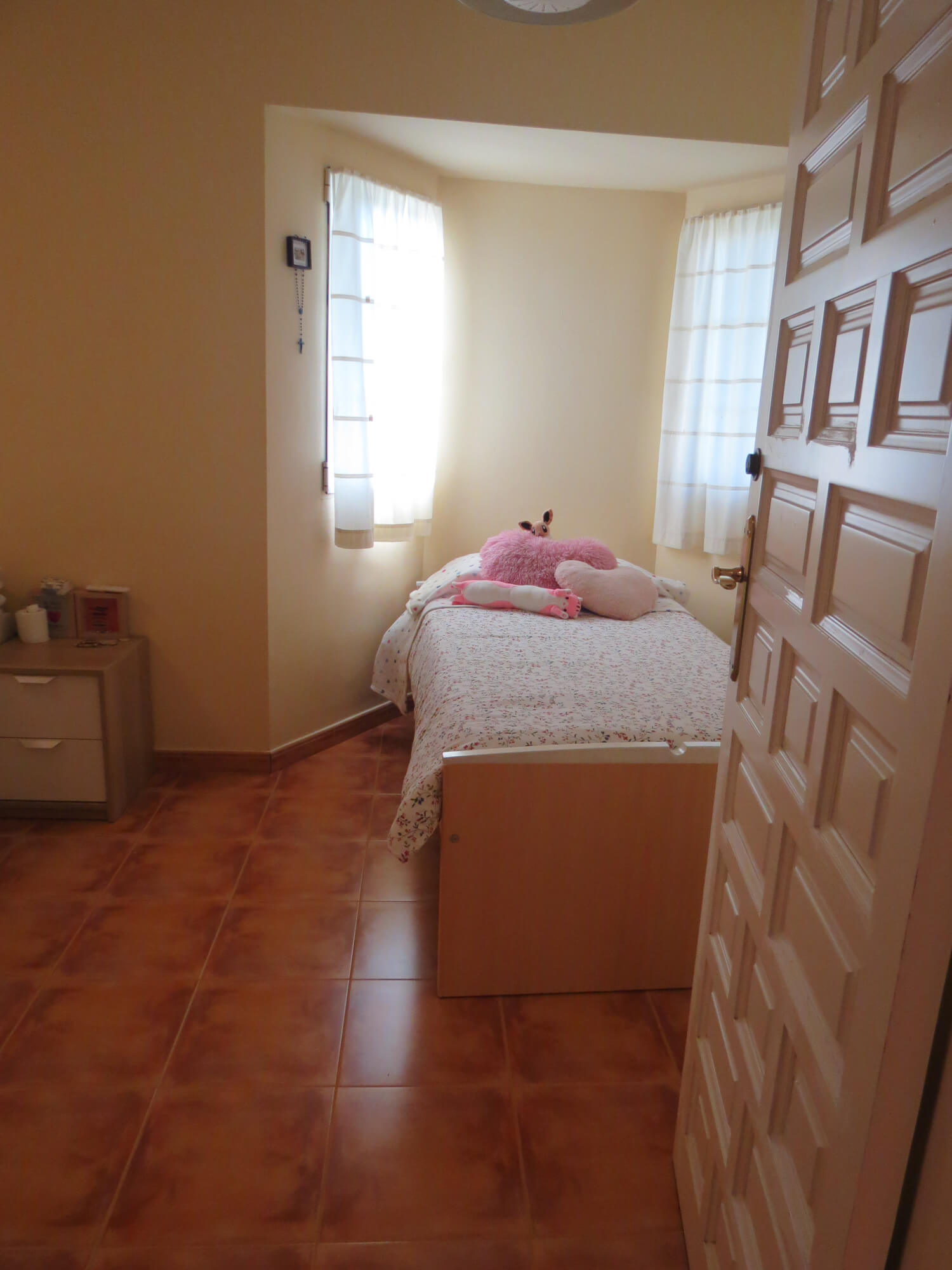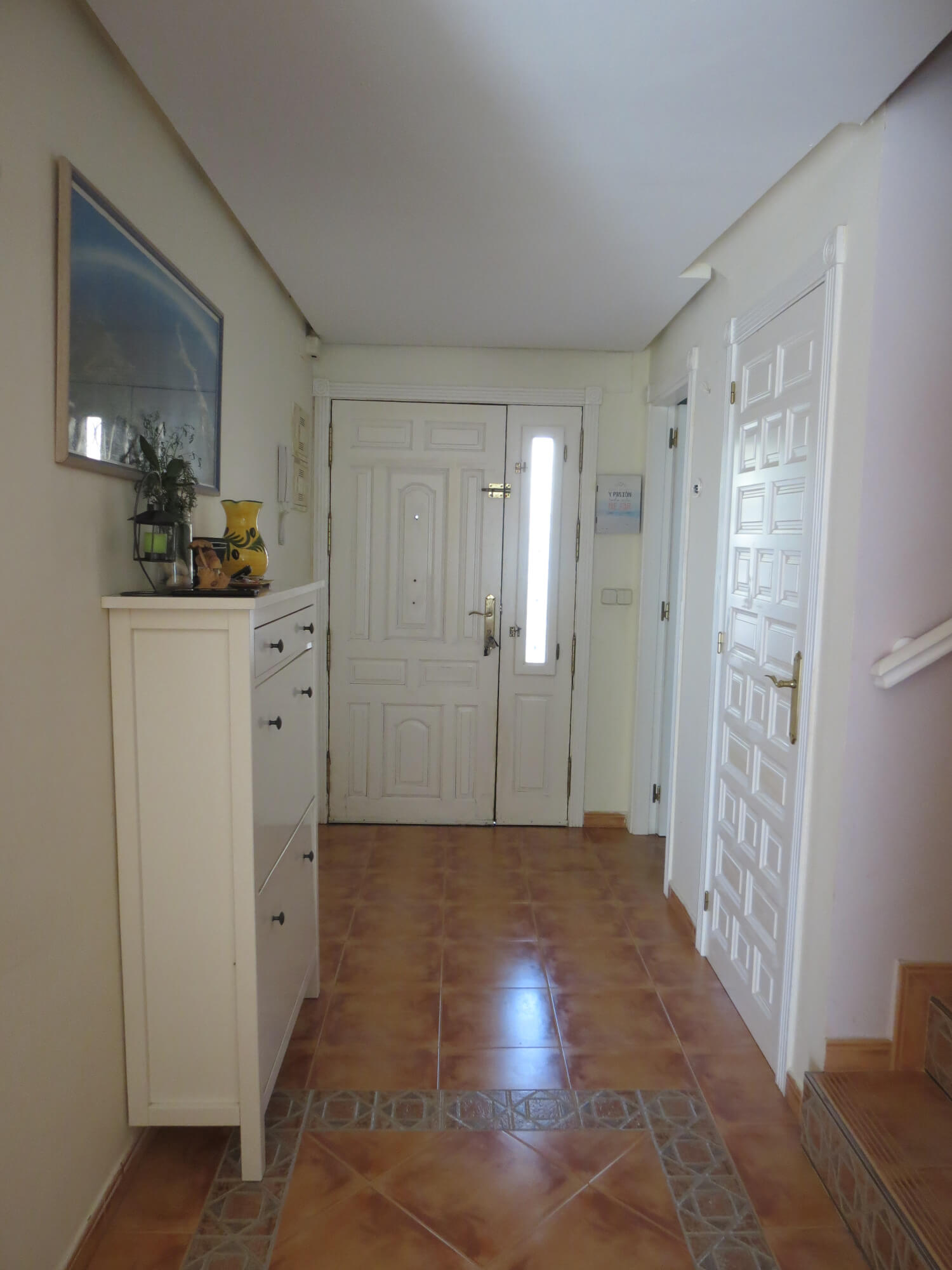 En la segunda planta cuenta con tres amplios dormitorios con armarios empotrados y ventiladores de techo, un baño totalmente equipado con placa de ducha y una gran terraza. Todas las estancias exteriores con mucha luz. Suelo de terrazo, puertas de madera lacadas en blanco y ventanas de aluminio blanco.
