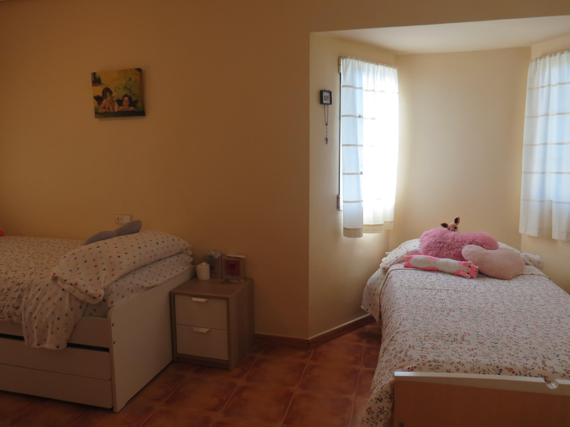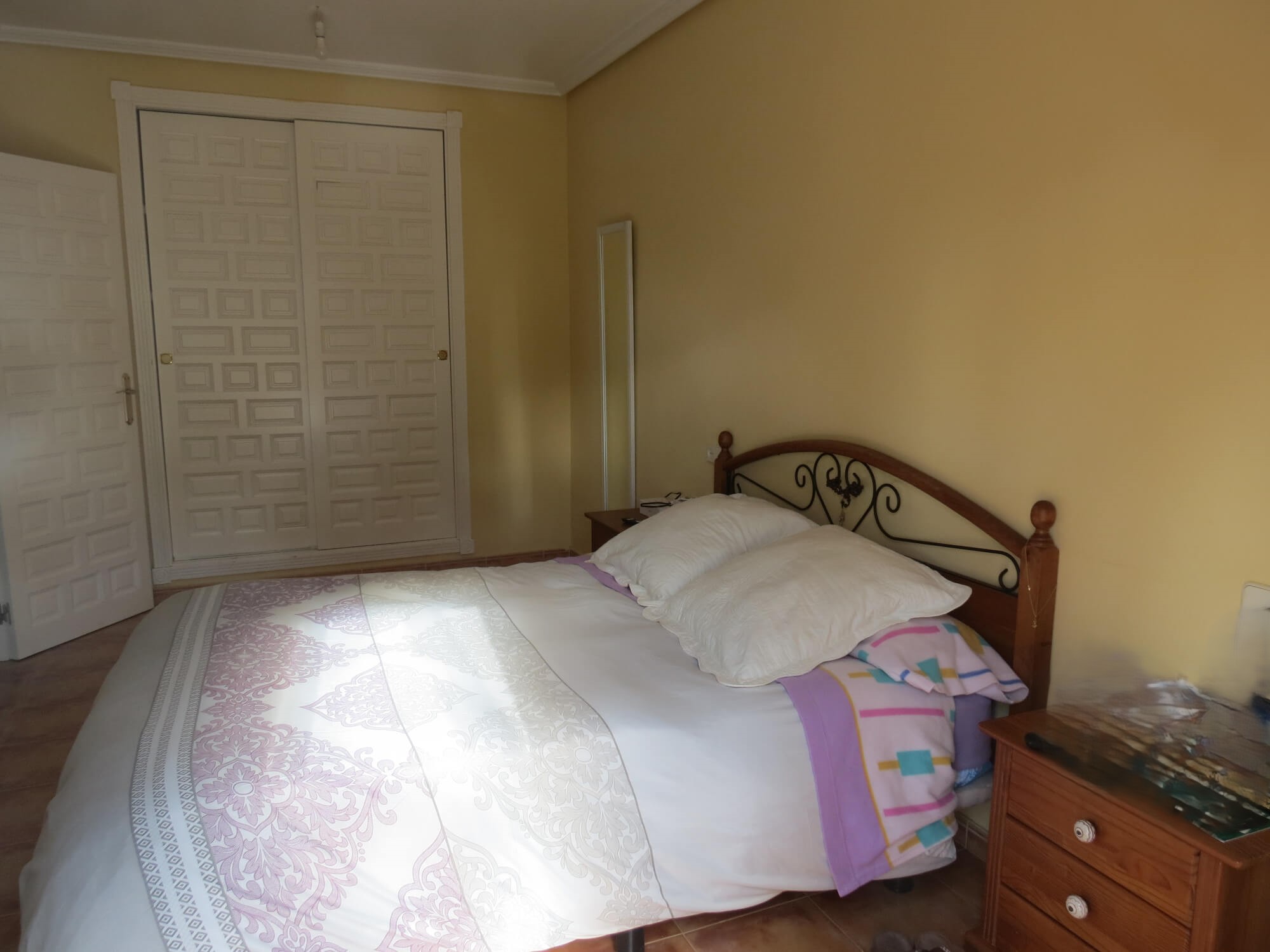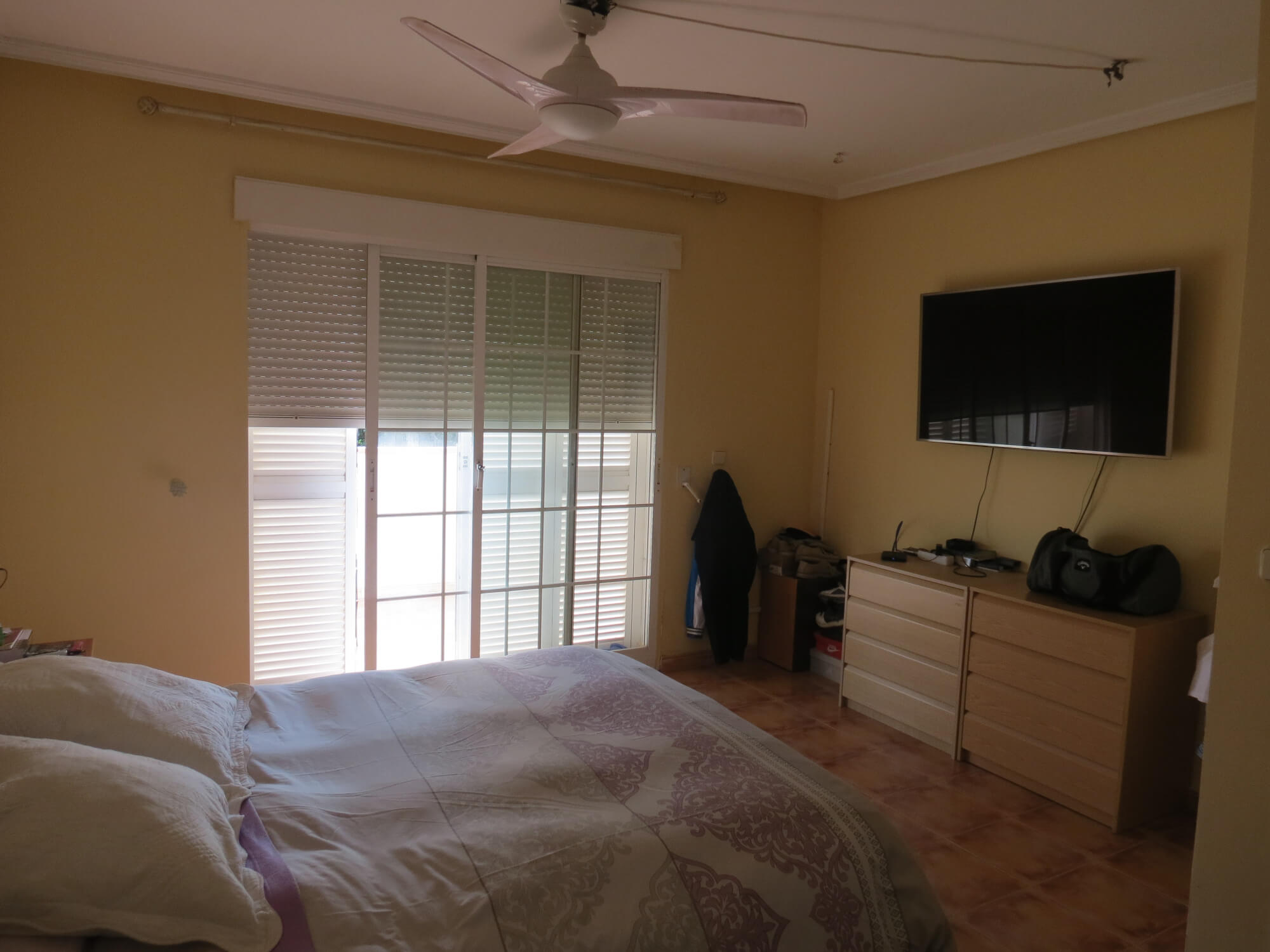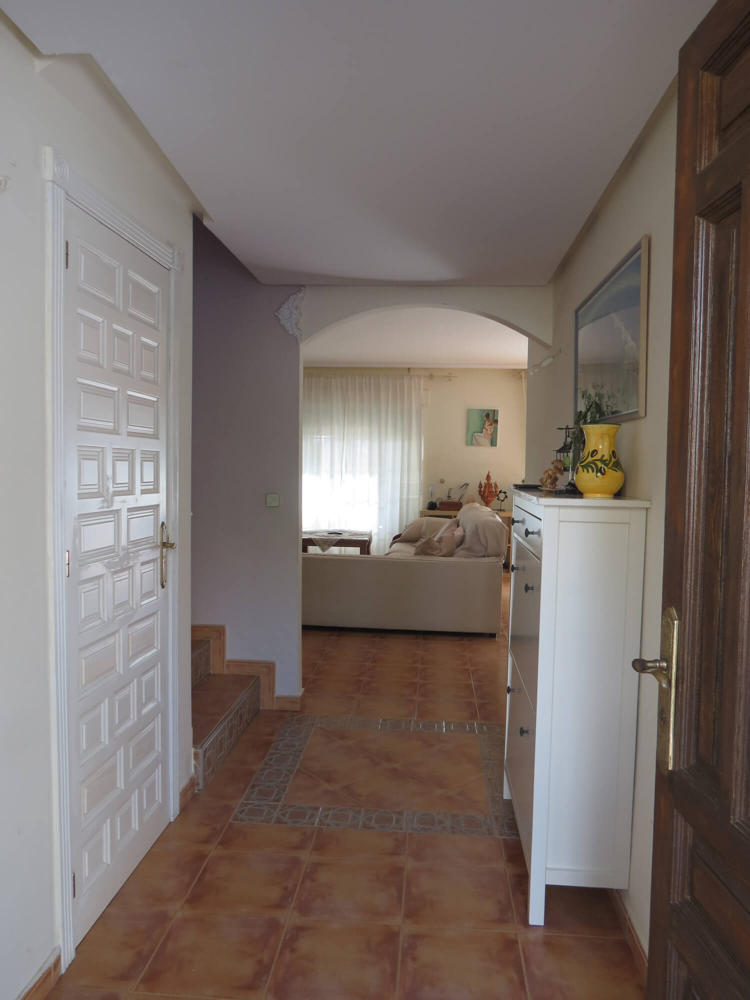 En la segunda planta cuenta con tres amplios dormitorios con armarios empotrados y ventiladores de techo, un baño totalmente equipado con placa de ducha y una gran terraza. Todas las estancias exteriores con mucha luz. Suelo de terrazo, puertas de madera lacadas en blanco y ventanas de aluminio blanco.