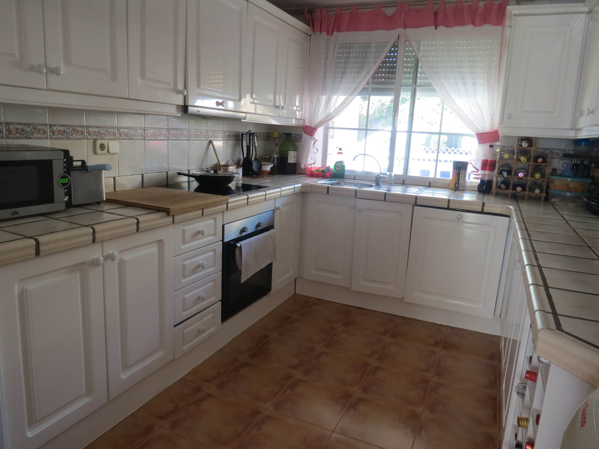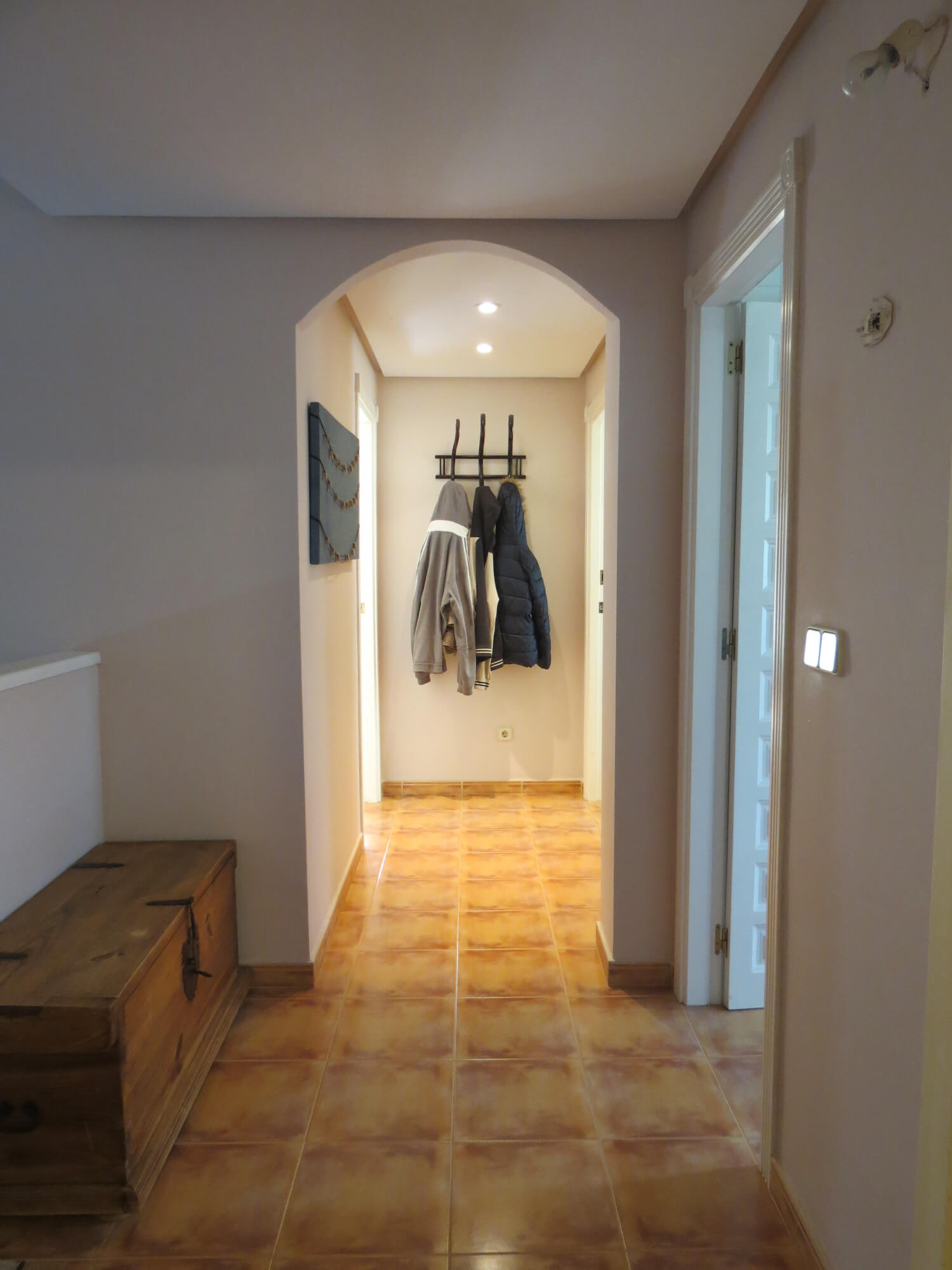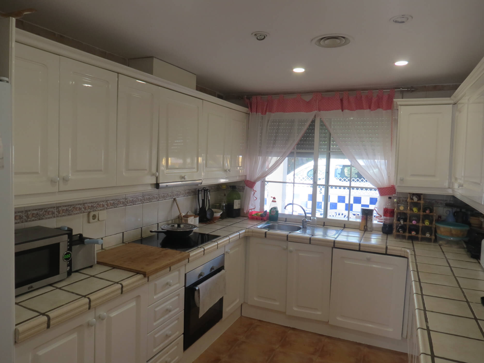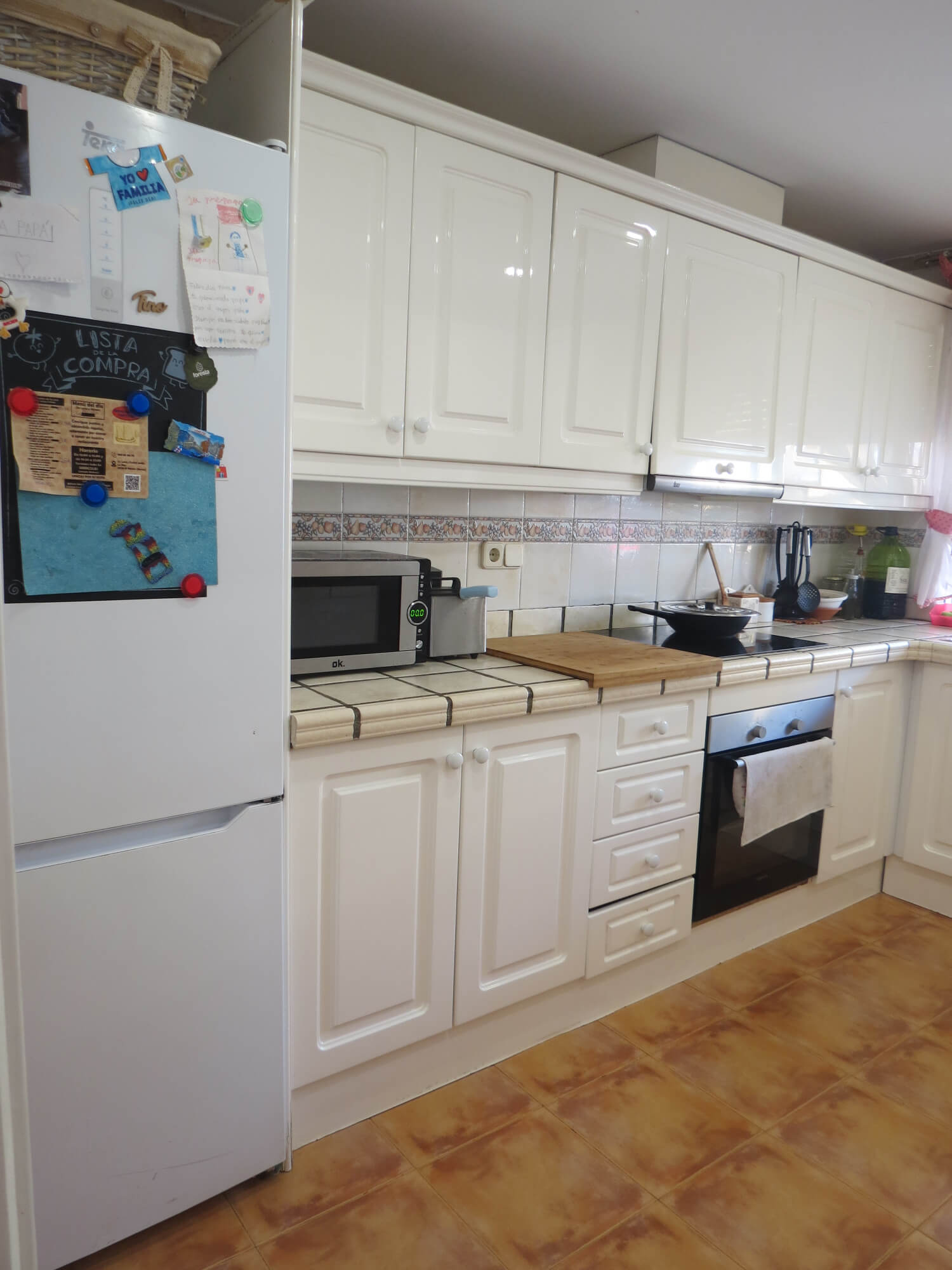 En la segunda planta cuenta con tres amplios dormitorios con armarios empotrados y ventiladores de techo, un baño totalmente equipado con placa de ducha y una gran terraza. Todas las estancias exteriores con mucha luz. Suelo de terrazo, puertas de madera lacadas en blanco y ventanas de aluminio blanco.