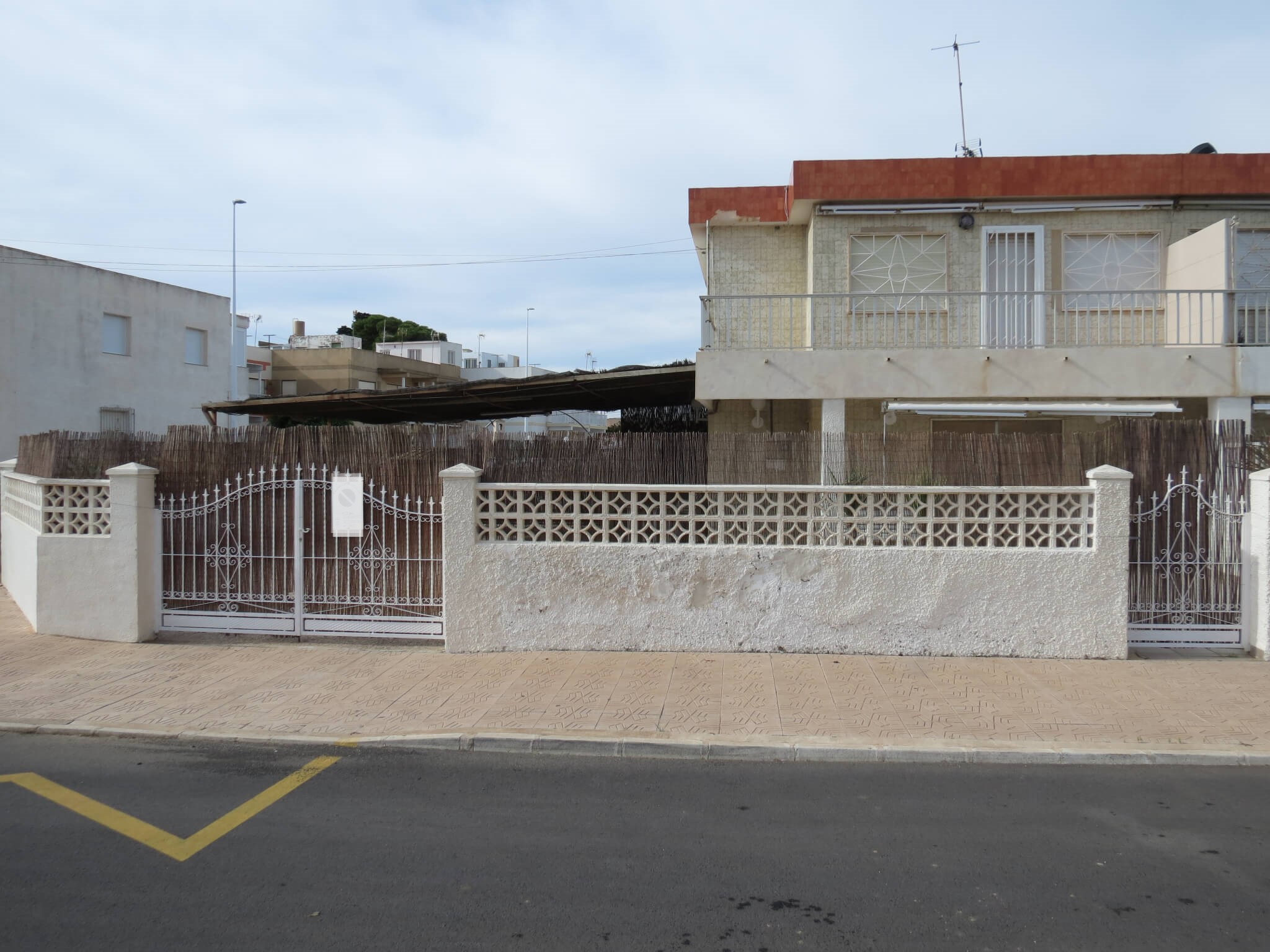 La vivienda hace esquina y cuenta con entrada por dos calles. Tiene acceso para poder meter el coche en el amplio jardín tanto por una calle como por la otra. Trastero, porche con toldo y muebles de jardín. En la planta de abajo nos encontramos con el salón con gran ventanal con acceso al porche, cocina totalmente amueblada y equipada con electrodomésticos con despensa y un baño totalmente equipado. En la planta de arriba cuenta con tres dormitorios, dos de ellos con armarios empotrados y vistas al mar y un baño totalmente equipado. El dormitorio principal tiene acceso a una amplia terraza con vistas a todo el Mar Menor.