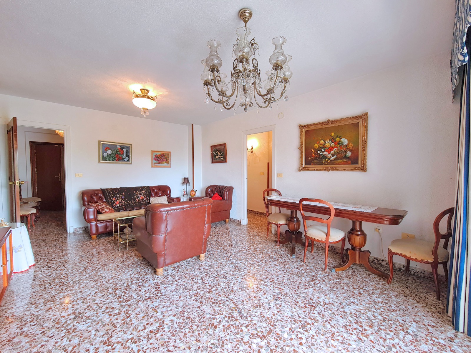 Piso en 2ª altura con superficie total 125 m². Dispone de 4 dormitorios amplios (uno actualmente habilitado como sala de estar), cocina amueblada y equipada con salida a galería cerrada, salón comedor amplio con balcón en excelente orientación. Además cuenta con dos baños completos (uno de ellos reformado). La vivienda dispone de sistema de alarma y plaza de garaje cerrado en el sótano del edificio.