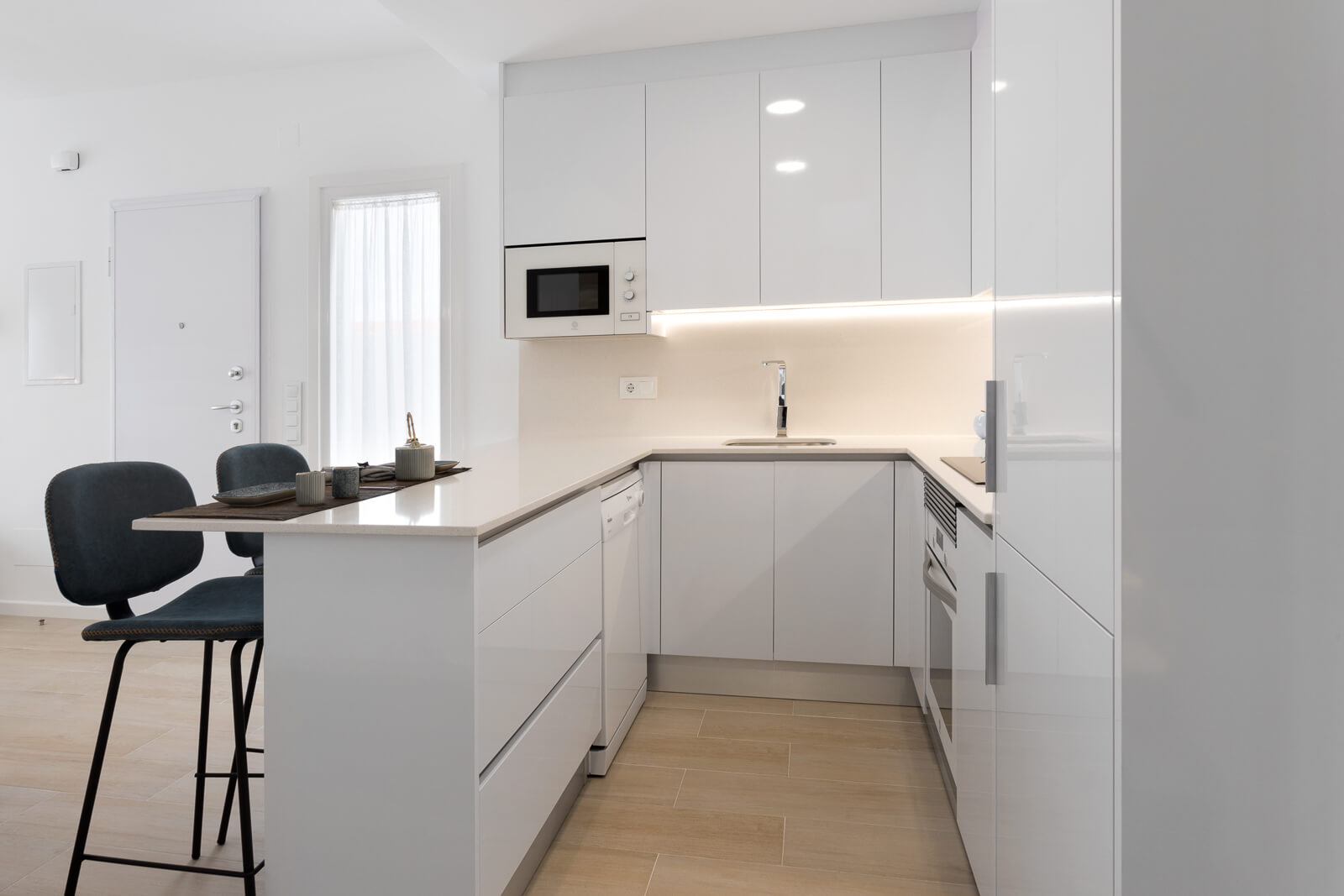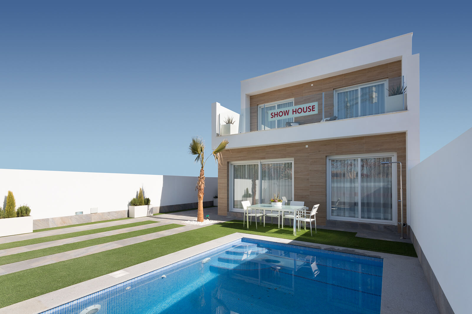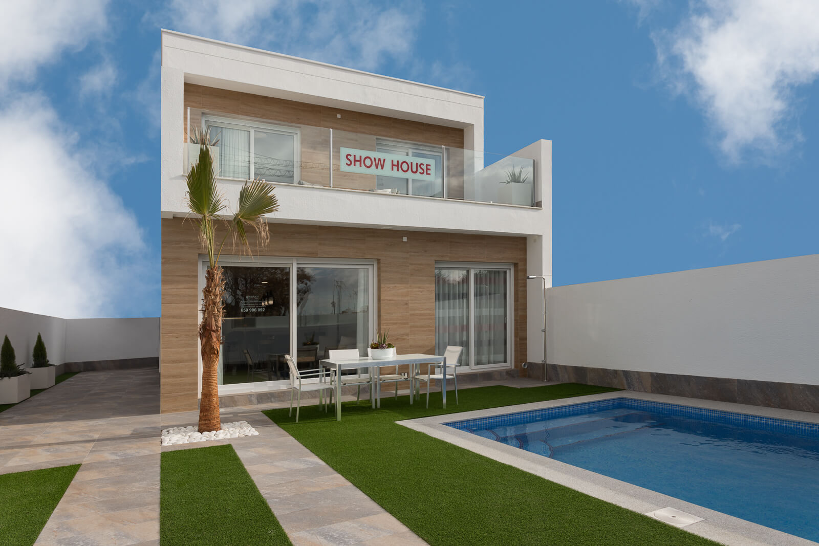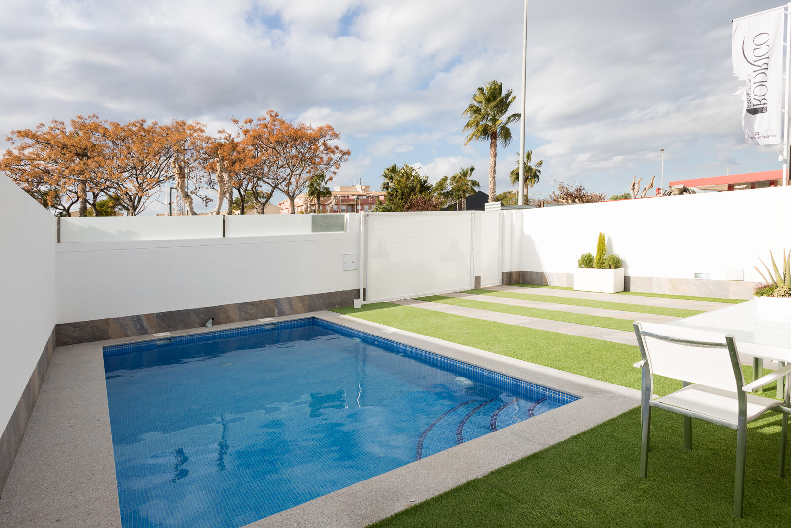 Residencial Palmeras Gold: Residencial formado por modernas villas independientes de 3 dormitorios y 2 baños. Estas villas de diseño moderno tienen una cuidada memoria de calidades, entre ellas, el dormitorio principal cuenta con vestidor, los baños totalmente equipados y con suelo radiante. La cocina totalmente amueblada y equipada con todos los electrodomésticos y además vinoteca para 12 botellas.